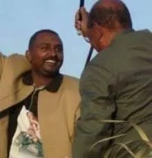 There is also an image of Dakhro sat with Salah Gosh, the notorious leader of the Islamist regime’s spy agency: the National Intelligence and Security (NISS).