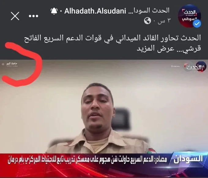 Yet the Sudanese Twitter community was taken aback when Hafiz Kabeer’s name appeared on the top left corner of a Skype interview that RSF spokesperson Al-Fatih Gorashi had with Al-Hadath news station. The footage suggested that the interview was held through Kabeer’s personal account.