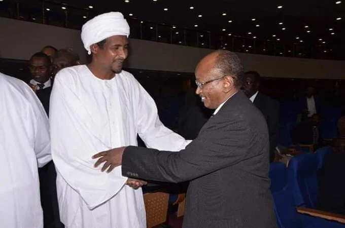 Abdulghaffar al-Sharif (right) shaking the hands of RSF commander Himedti